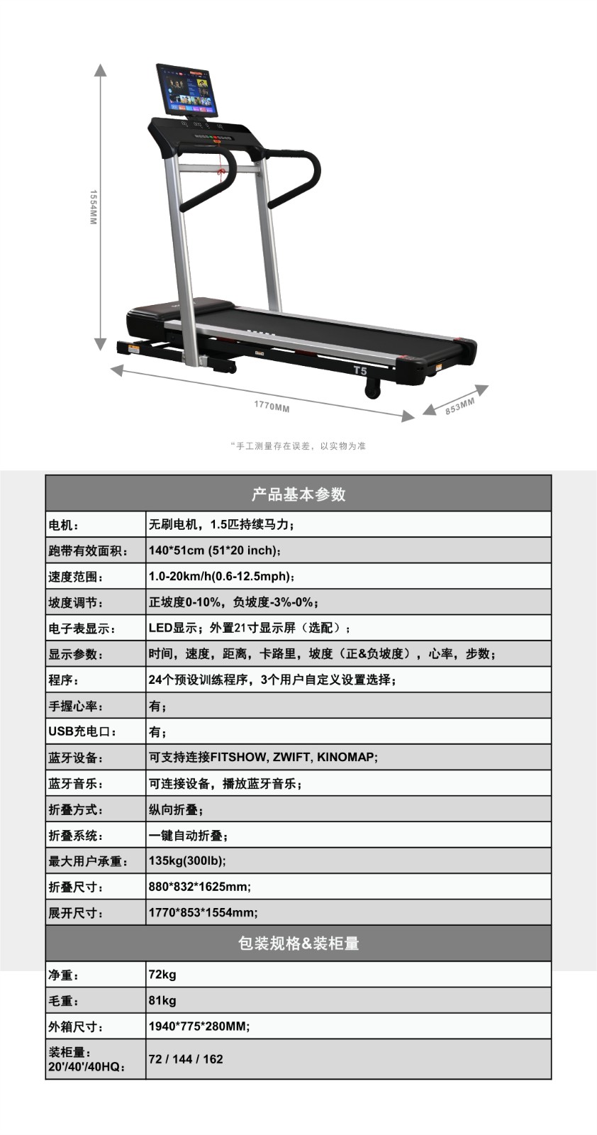 跑带有效面积:140*51cm (51*20 inch);